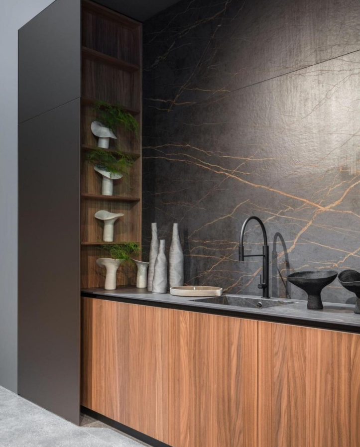 Si tienes una vajilla “top” para lucir, una cristalería u otros objetos decorativos, los armarios altos con puertas de vidrio o vitrinas son una excelente opción para ti. Puedes iluminar el interior para resaltar tus objetos con luces led y darle un toque totalmente vanguardista a una cocina moderna.